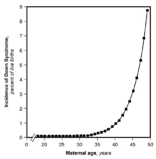 وترتفع نسبة "بشكل كبير" اذا كان عمر الأم فوق 35 عام (وبعض الدراسات تقول 30 عام) وستحتاج الى عناية واشراف طبي.