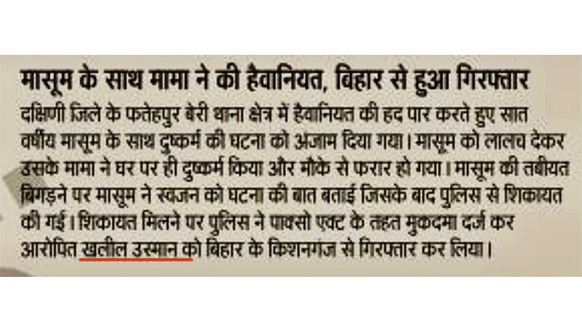 Saharsa:Two minor Mahadalit kids of age 15 and 8 were kidnapped and gangraped by Sarfaraj,Shamshad and Hiraj. Police Inspector Rehman Ansari didn't act when the local village Panchayat freed the three Mohammads by fining just rs 63k . bhaskar.com