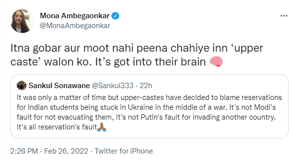 Internet: Alleged actor Mona Ambegaonkar abuses a section of society using cow piss/dung slur which has been used by terrorists before executing terror attacks. Adil Ahmed, a terrorist who killed over 40 security personals had used similar slurs before the attack.