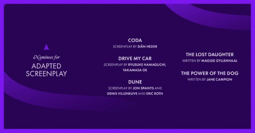 الأفلام المرشحة للأوسكار كأفضل سيناريو مقتبس :