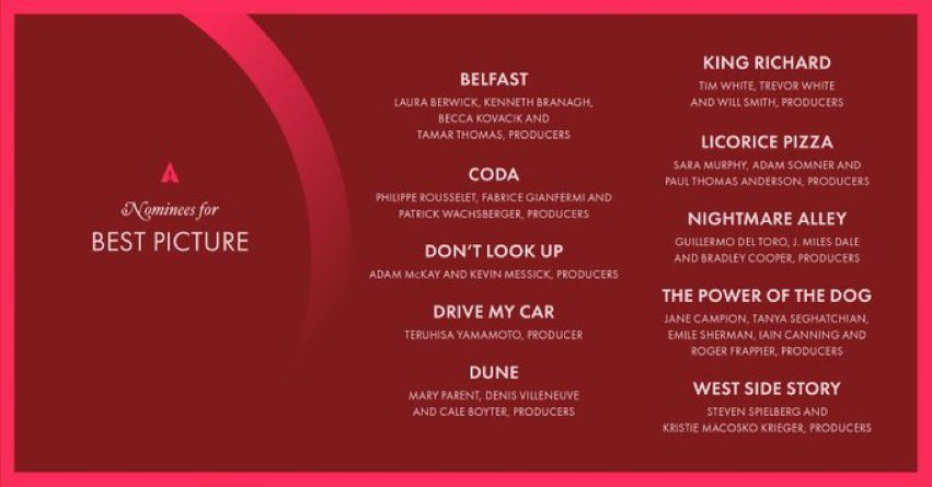 واخيرًا الأفلام المرشحة للأوسكار كأفضل فيلم في العام ، إليكم القائمة :