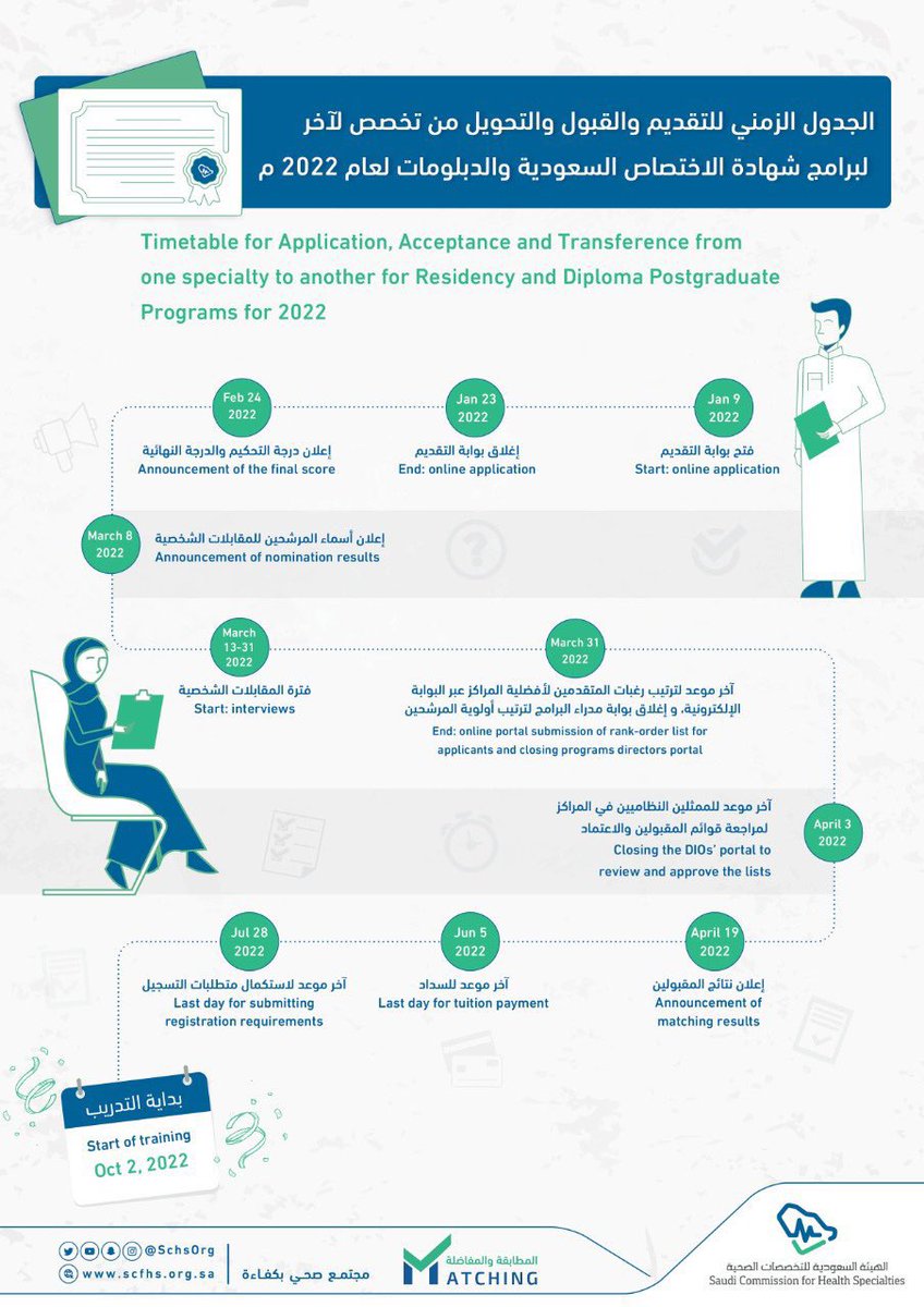 #هيئة_التخصصات_الصحية تتيح برامج الدراسات العليا سواء في مرحلة "الرزدنسي أو الزمالة" لكل خريجي الكليات الصحية بالمملكة 🎓 ويتم الإعلان عن مواعيد التقديمات سنوياً عبر بوابة الماتش 💻