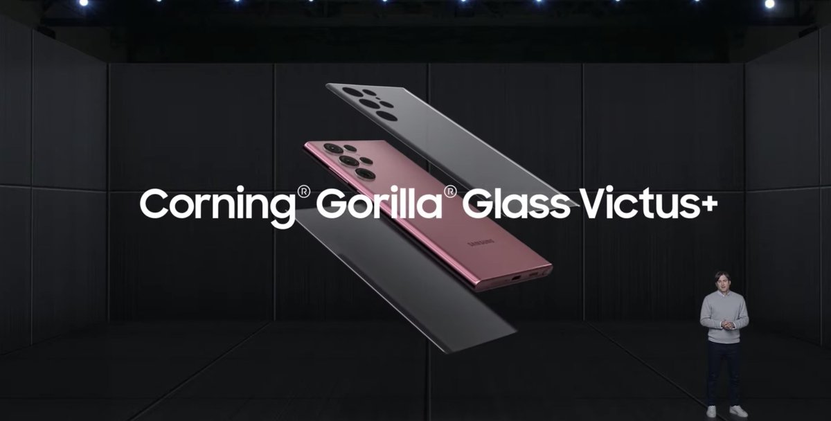 شاشة الـ S22 الترا هي 6.8 انش من نوع الداينميك اموليد 2X، وتعطي زواية رؤىة عالية والجوال يجي بطبقة الجوريلا جلاس فيكتوس + وتعتبر اقوى من السابق