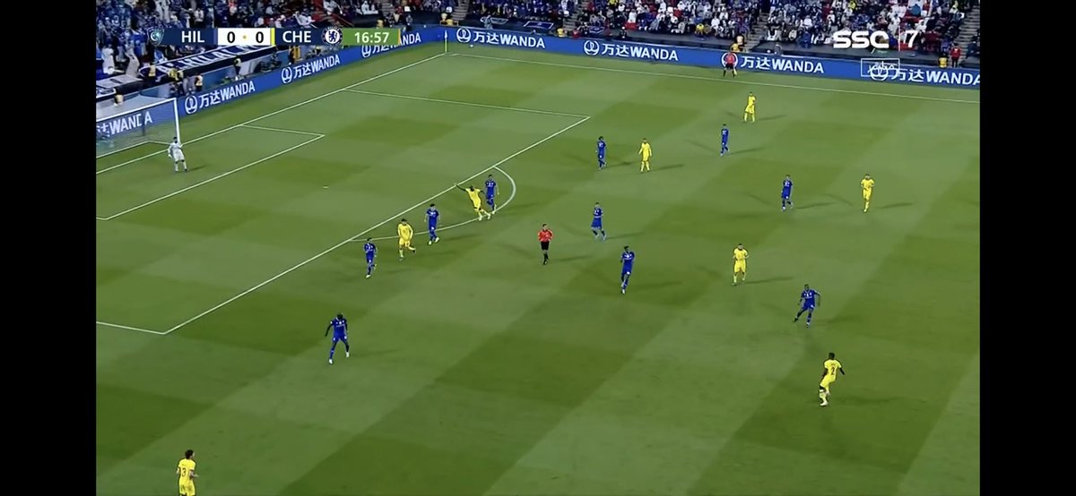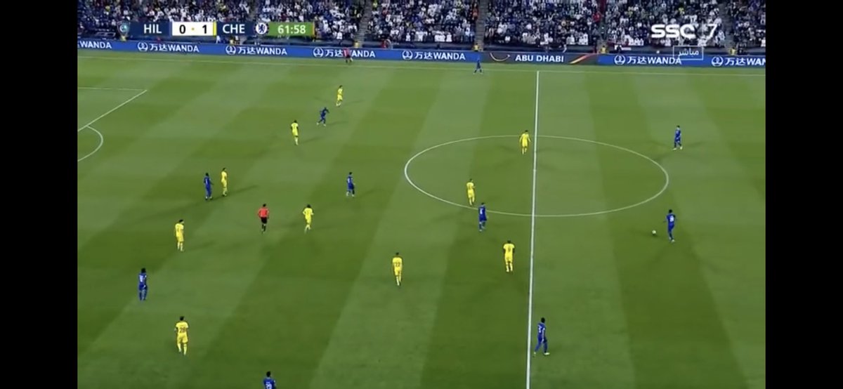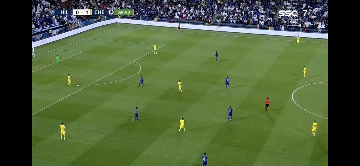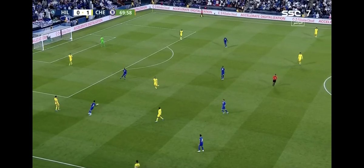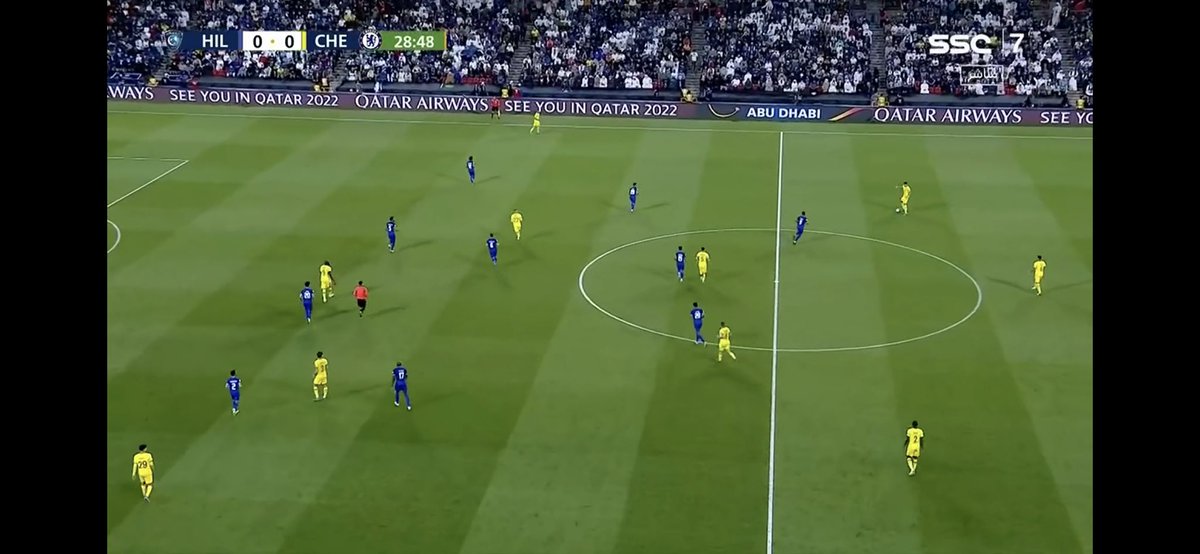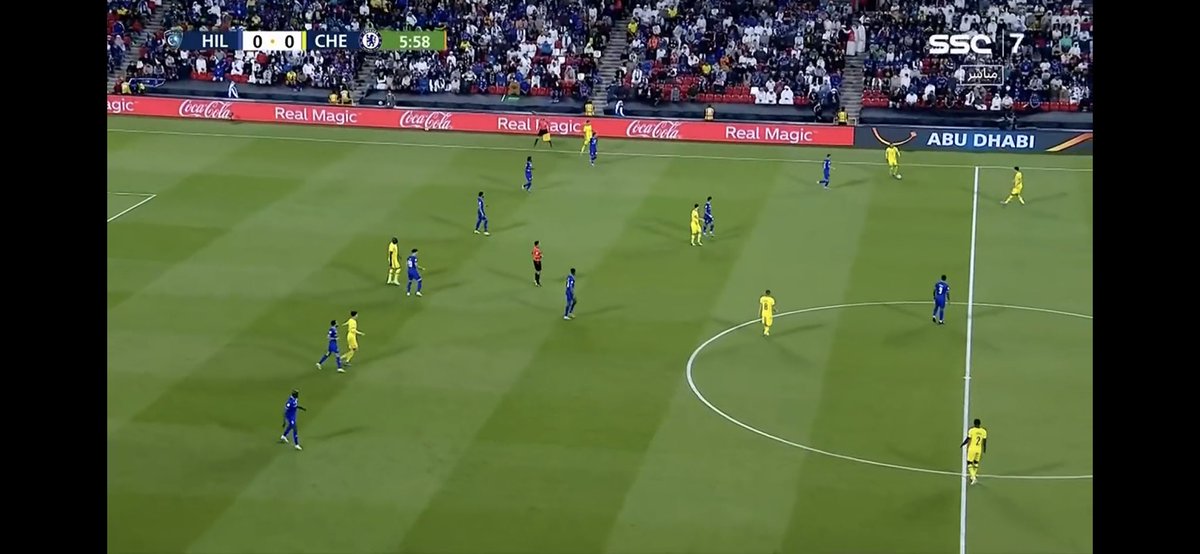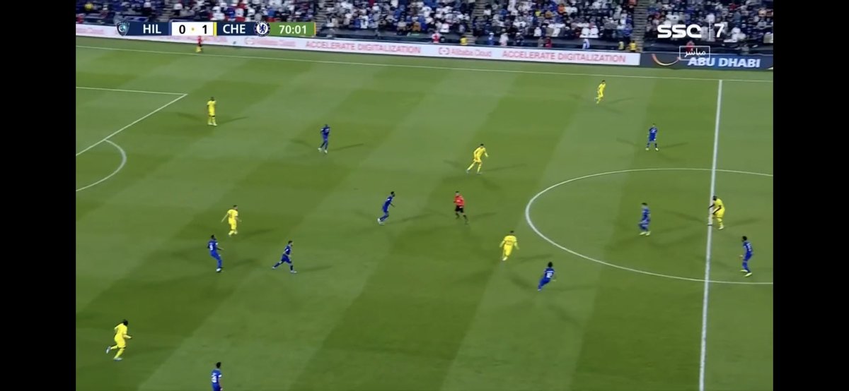 حركية لاعبين الوسط هنا كانت تشكل نقطة وعامل مهم في متابعة الكرة ومنع ثلاثي الدفاع من جانب تشيلسي من الدخول والزيادة او حتى اللعب بين الخطوط لذا هنا كنا نشوف تدخل مميز من قلبي الدفاع او حتى الوسط تحديدا كويلار وجانغ ..