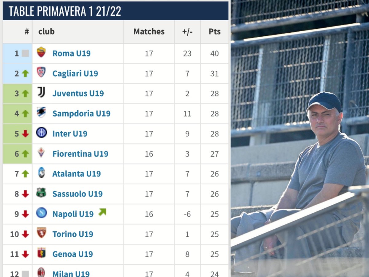 روما تتصدر البريمافيرا تحت قيادة دي روسي الأب وتحت أنظار مورينهو بـ ٤٠ نقطة وبفارق ٩ نقاط عن الوصيف.