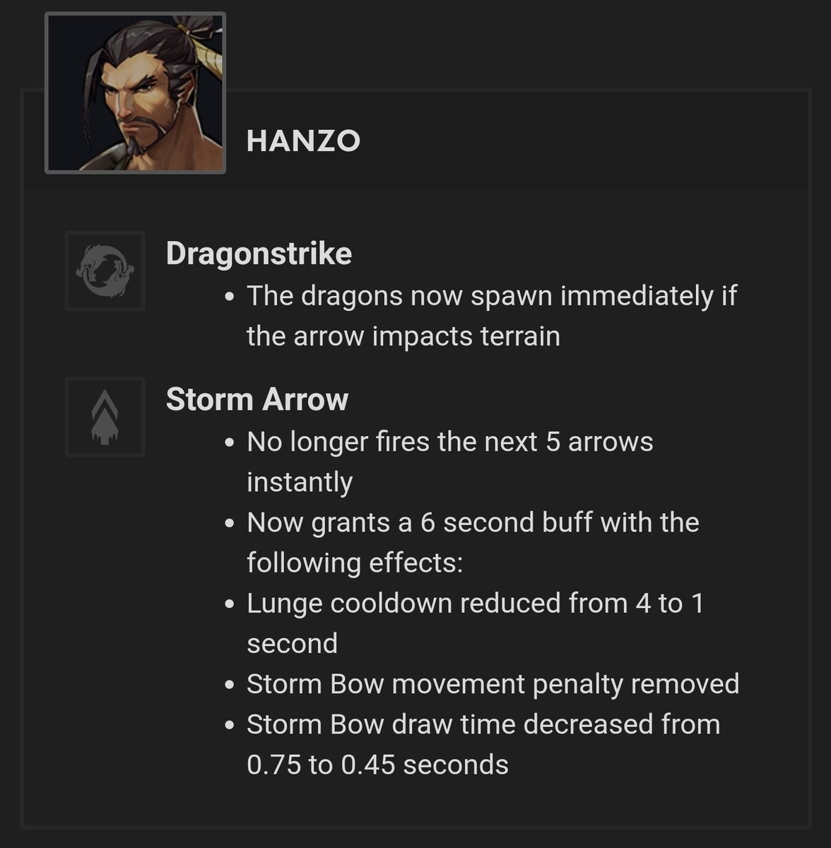 -في الفترة الزمنية خلال إستخدام قدرة السهام السريعة راح يكتسب هانزو بفات لمدة 6 ثواني وهي :