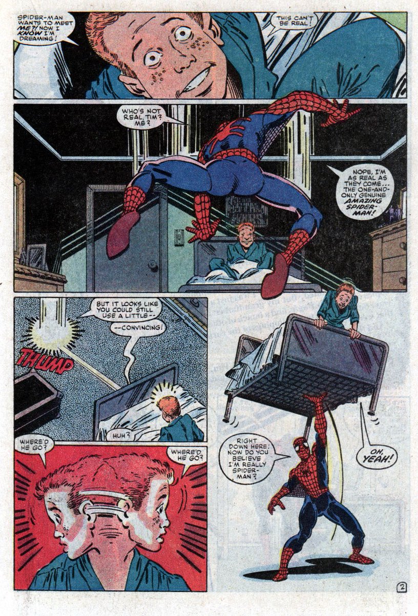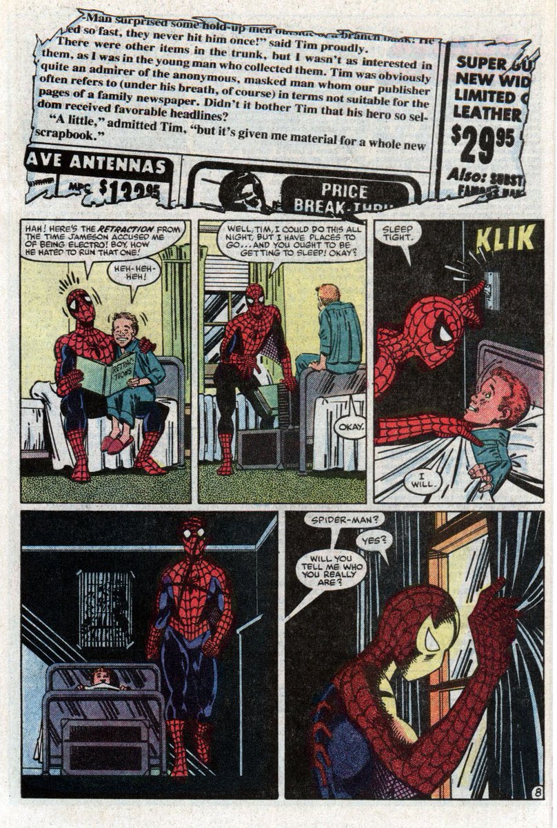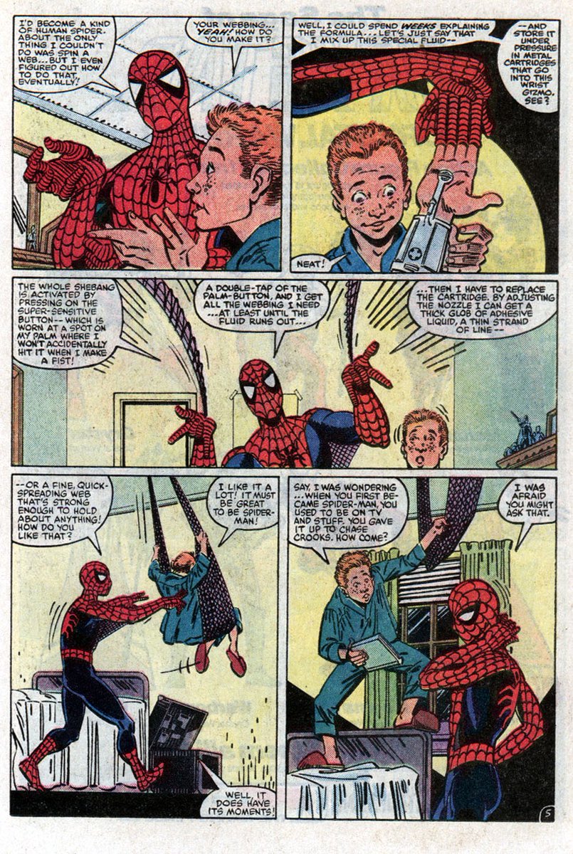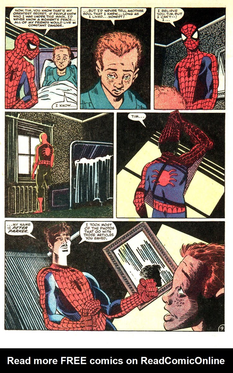 في هذا الكوميك نرى أن سبايدرمان قد توجه لمقابلة طفل لم نعلم به من قبل يدعى تيم و نرى أيضاً أنهما يقضيان وقتاً مع بعضهما و كأنهما يعرفان بعضهم البعض حيث أن سبايدرمان قد قام باللعب معه و قراءة بعض القصص و أيضاً تحدثا لبعض الوقت