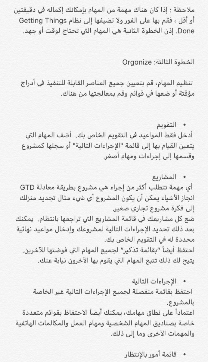 والتي تكلم عنها الكاتب ديفيد الن بالتفصيل في كتابه كيف تنجز جميع المهام، والذي انصحك بقوة بقرائته.