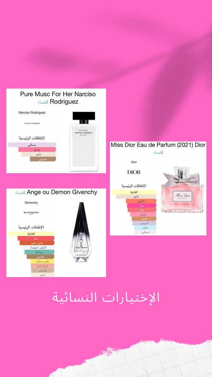 قبل اعطيك امثله سواءً لعطور رجاليه او نسائيه ركز في المعلومات اللي ذكرتها فوق وخليها اساس للبحث عندك عن نوع #عطرك_المفضل للاوقات الرومانسية✨