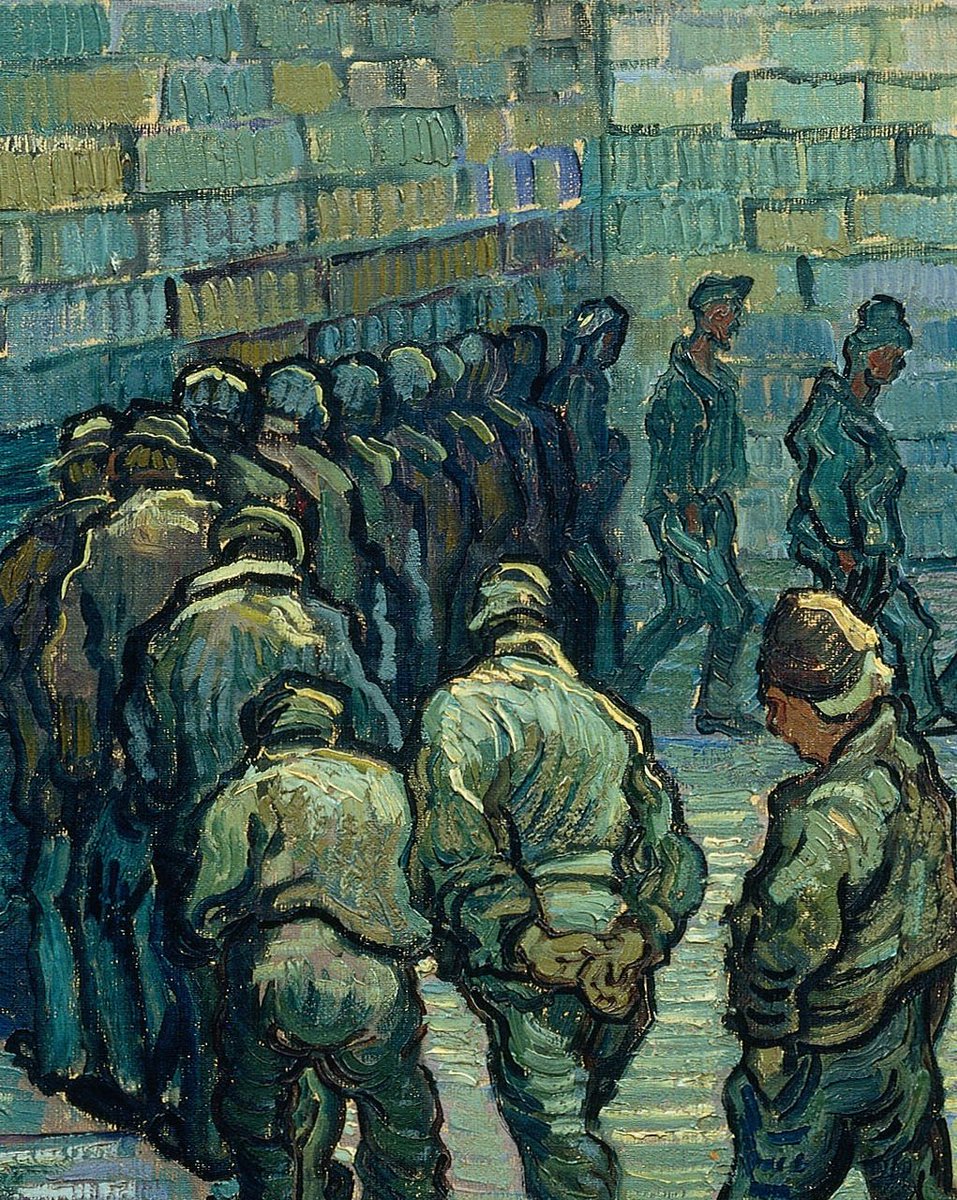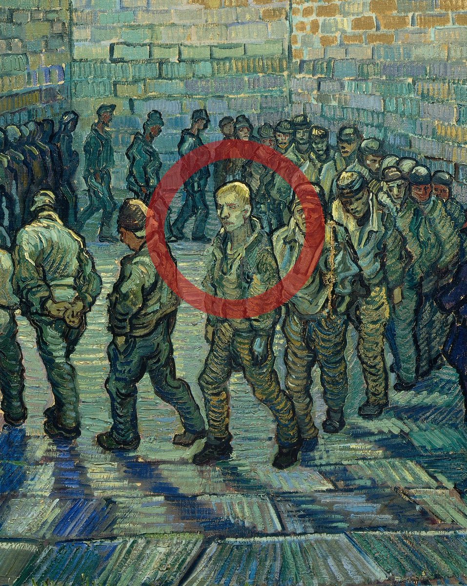 كان فان جوخ يبلغ من العمر 37 عامًا عندما انتحر. وفي هذه اللوحة ، كان هناك بالضبط 37 رجلاً. من غير المعروف ما إذا كان هذا شيئًا خطط له ، لكنه كان لشخص شعر أنه يقضي كل عام في زنزانة.