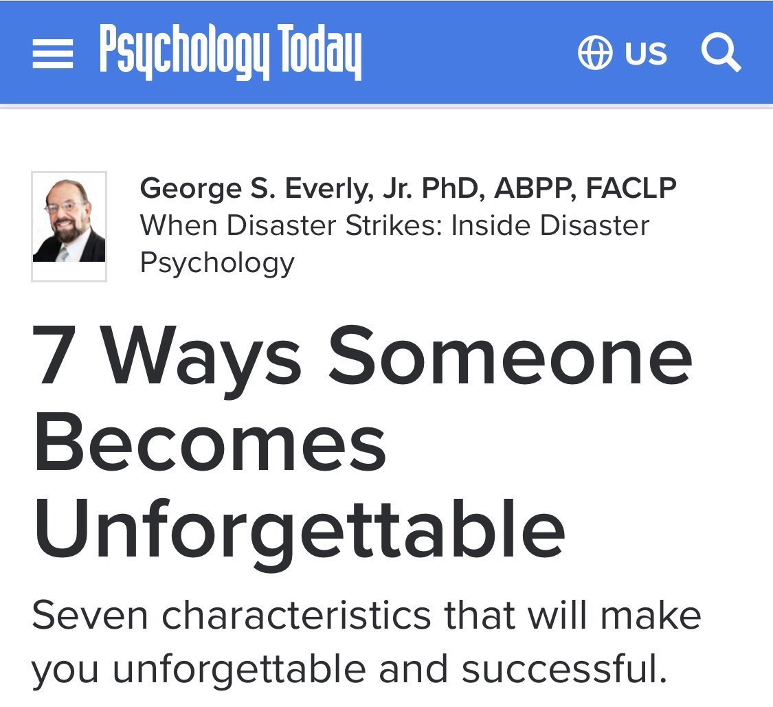 George S. Everly عالم النفس في جون هوبكنز، ومع خبرة تجاوزت ٤٠ عاما يرى أن هناك (٧) صفات شخصية يشترك فيها الأشخاص الناجحون تعزز نجاحهم، وتجعل من يقابلهم أو يتعامل معهم لا ينساهم.