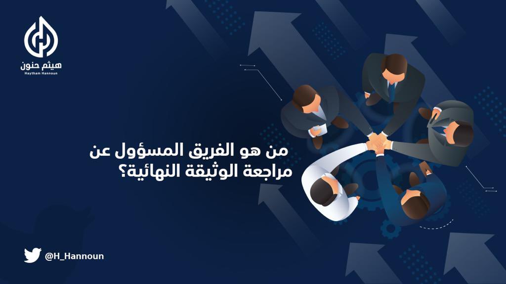 ويقوم #الفريق بمراجعة الوثيقة النهائية من خلال تقييم مسودة العرض من منظور #العميل، حيث ويقدم فريق المراجعة توصيات للتحسين، بعد استكمال التغييرات والحصول على الموافقة النهائية، وبعد ذلك يتم تقديم ملف #العرض للعميل.