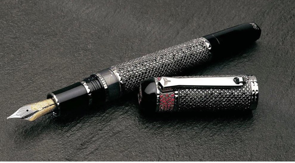 صنع قلم لامودرينستا بواسطة شركة سويسرية، وهو مرصع بــ 5072 فص