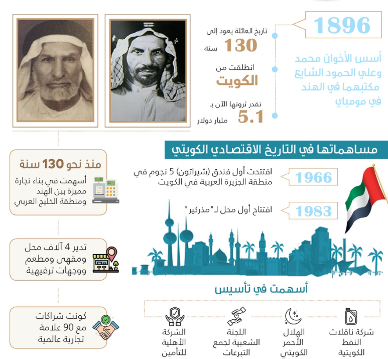 تعتبر مجموعة الشايع أقدم شركة كويتية حيث تم تسجيلها عام 1890 وبدأت تجارتها بين الكويت والسعودية والهند..