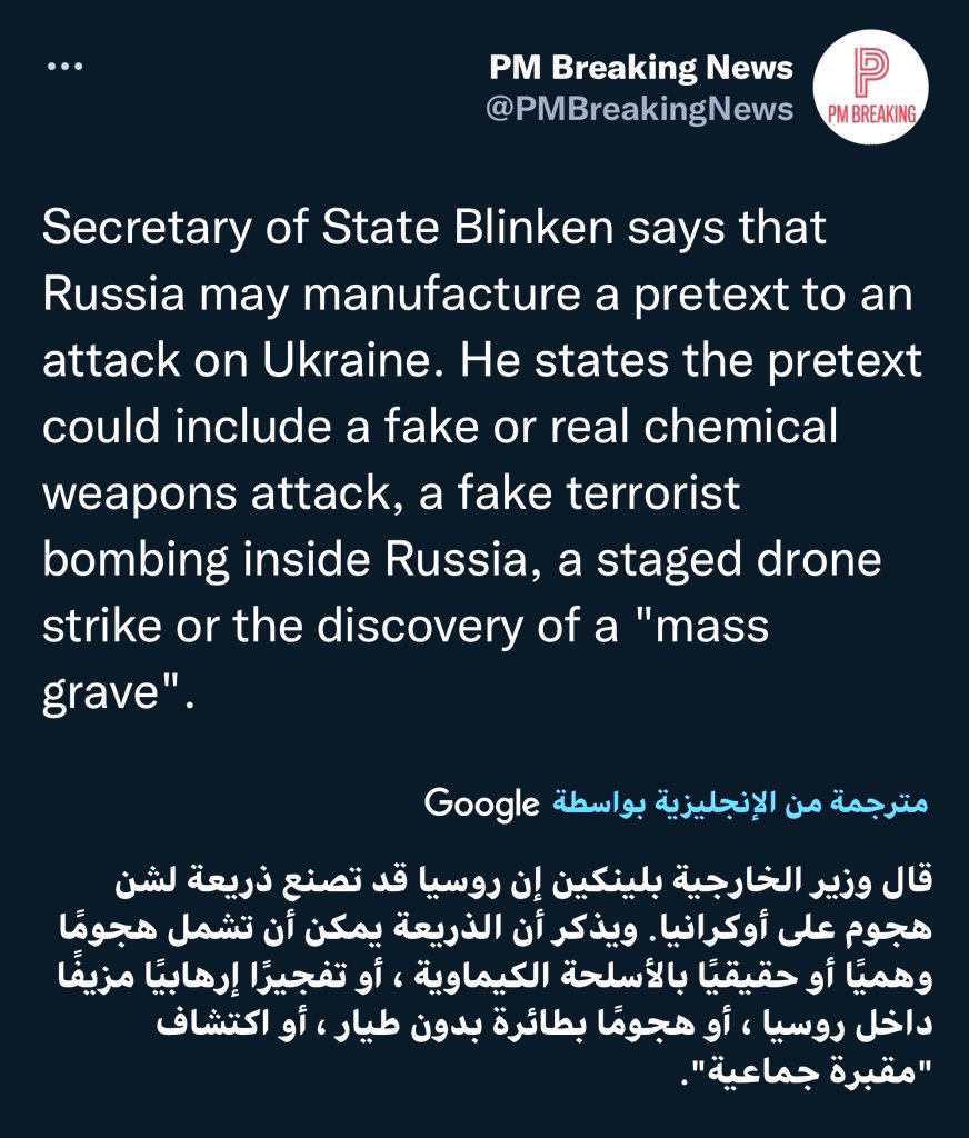 وزير الخارجية الأمريكية أنتوني يتوقع بعد عدة ساعات ان تقوم روسيا بغزو أوكرانيا