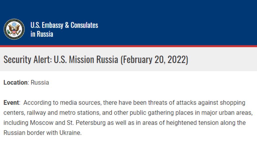 -السلطات الامريكية تأمر جميع موظفين السفارة المتواجدين في أوكرانيا الانتقال باسرع مايمكن الى بولندا لأسباب أمنية