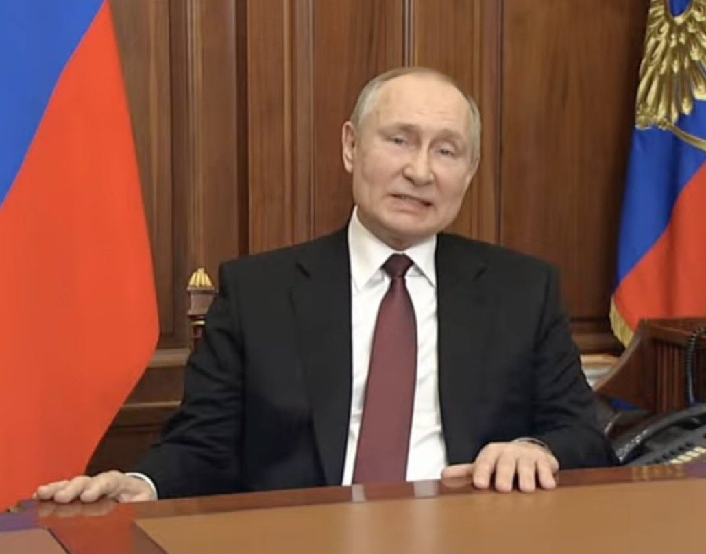 الرئيس بوتين يعلن رسميا عملية عسكرية لغزو أوكرانيا في الشرق عند إقليم دونباس اي بمعنى انه ينفذ طلب زعماء إقليم دونباس لتصدي لهجوم الجيش الأوكراني