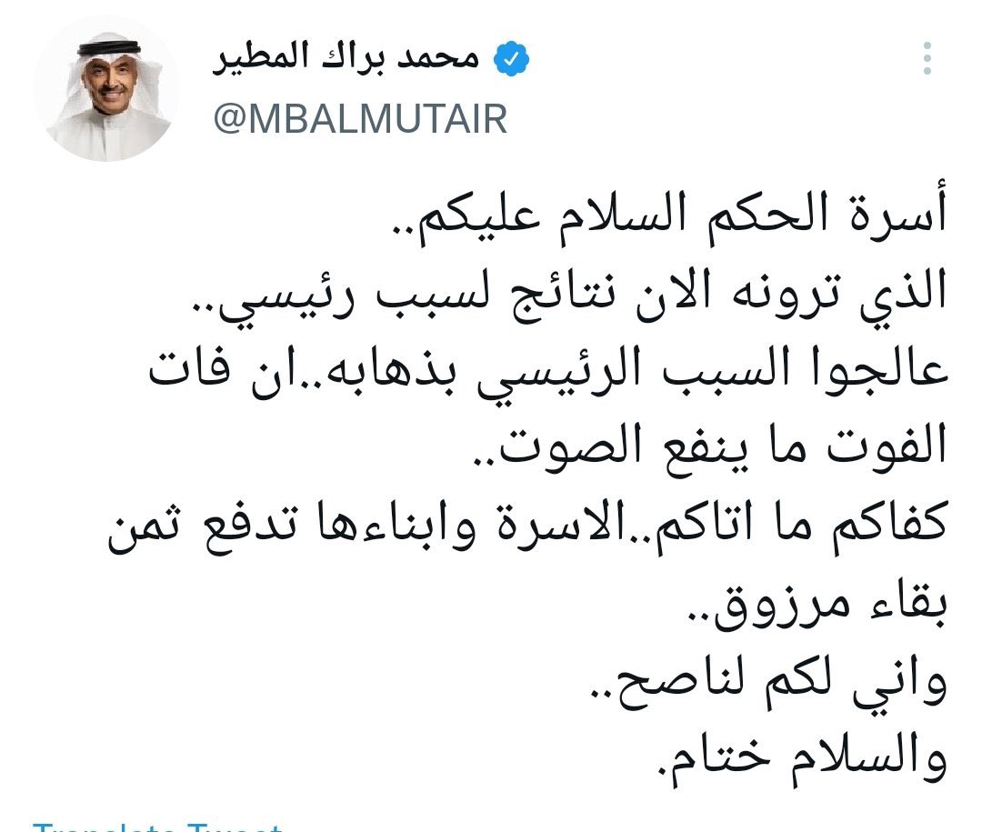 لكن هذه نتيجة الرعونة واتخاذ مواقف حادة من غير خط رجعة بحجة شعارات براقة مثل (إرادة الشعب) ونسوا بأن السعدون خسر الرئاسة مرتين أمام المرحوم الخرافي بسبب أصوات الحكومة لكن تقبل هو ومناصروه النتيجة واتجهوا للعمل