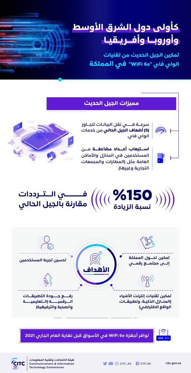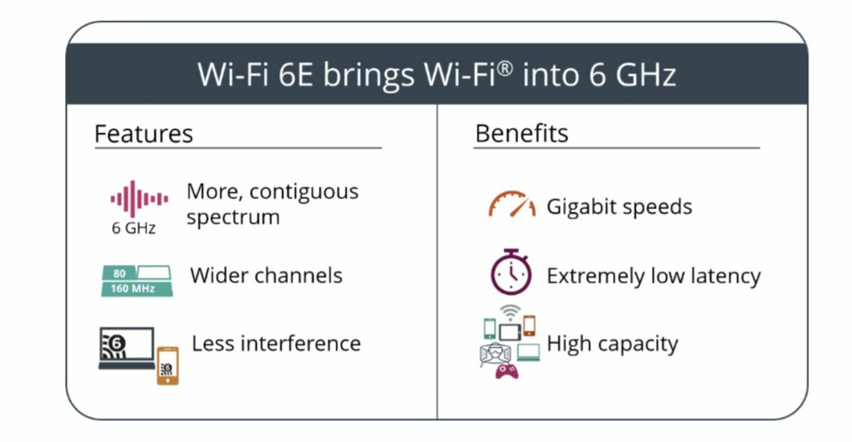 تقتصر الأجهزة التي تم تبنيها في وقت مبكر باستخدام Wi-Fi 6 (مثل الدفعة الأولى من أجهزة راوتر Wi-Fi 6) على طيف 2.4 جيجا هرتز و 5 جيجا هرتز ، بينما ستتمكن الأجهزة المتوافقة مع Wi-Fi 6E من الوصول إلى موجات ال 6 جيجا هرتز.