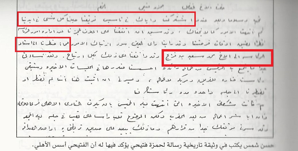 هذه الأدلة عبارة عن وثيقتين وردتا في كتاب حمزة فتيحي رمز الاتحاد للمؤرخ الدكتور محمد على القدادي طبعة عام 1427هـ. والهدف من كتابتهما اثبات ان الفتيحي أسس الأهلي.