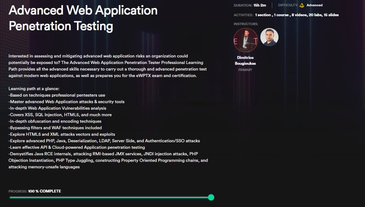 وتعتبر أقوى شهادة في الشركة في مجال الويب تؤكد لحاملها خبرة في اختبار اختراق تطبيقات الويب.