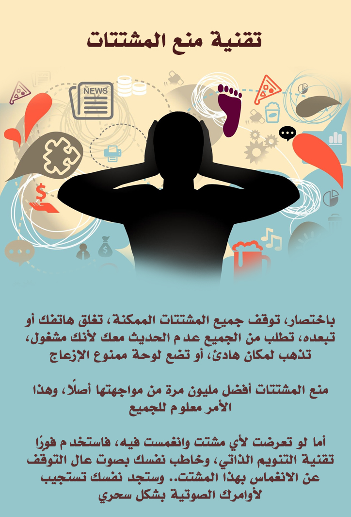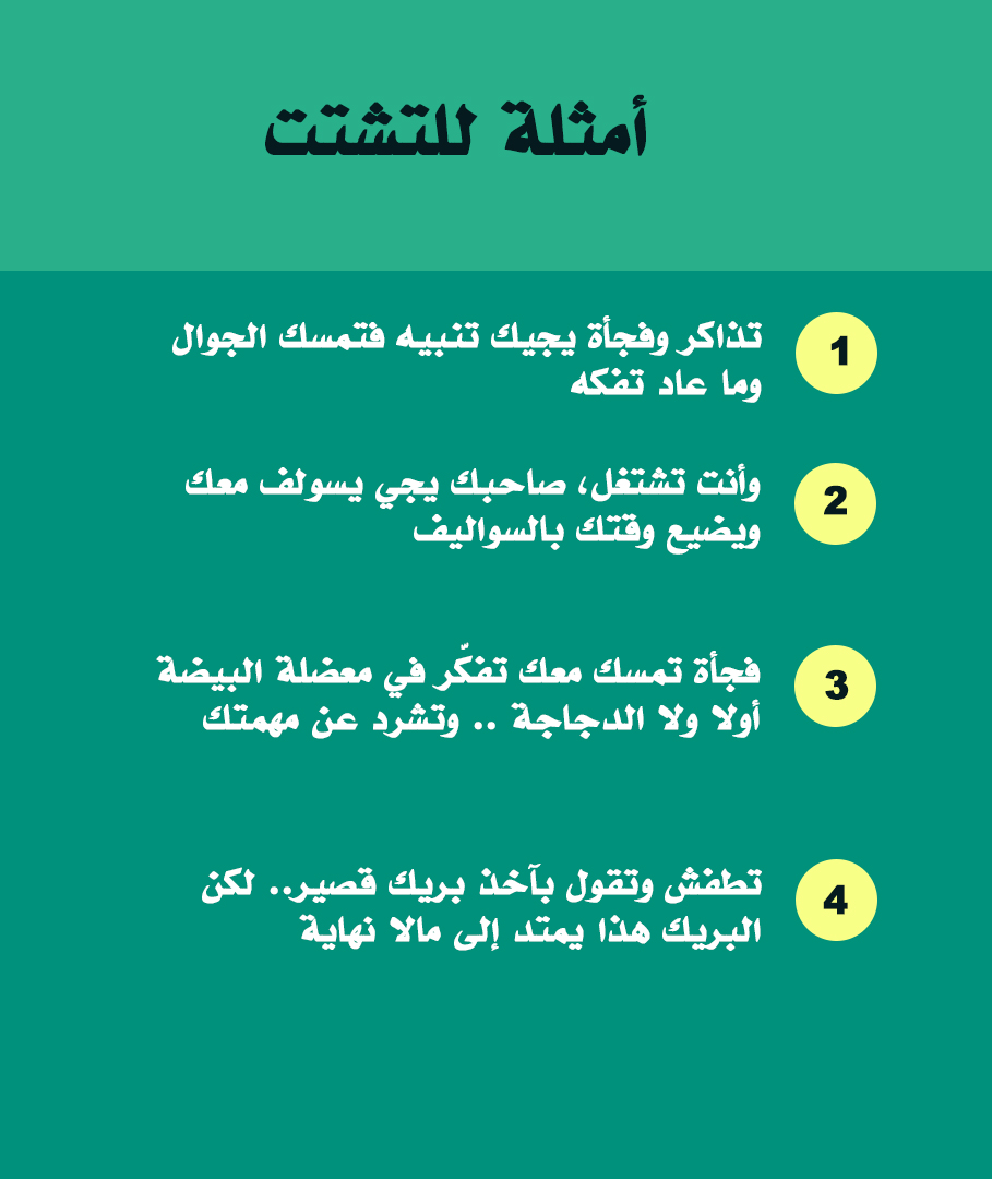 يوم تتعرض للتشتت أو توقّف التقدم في آداء المهمّة أو المذاكرة، افهم نوعية هذا التشتت وتابع هالتقنيات