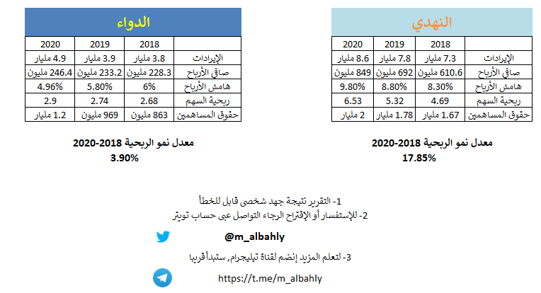 المأخذ فقط أن النهدي في النصف الأول من ٢٠٢١ سجل تراجع في الربحيه مقارنه ب ٢٠٢٠