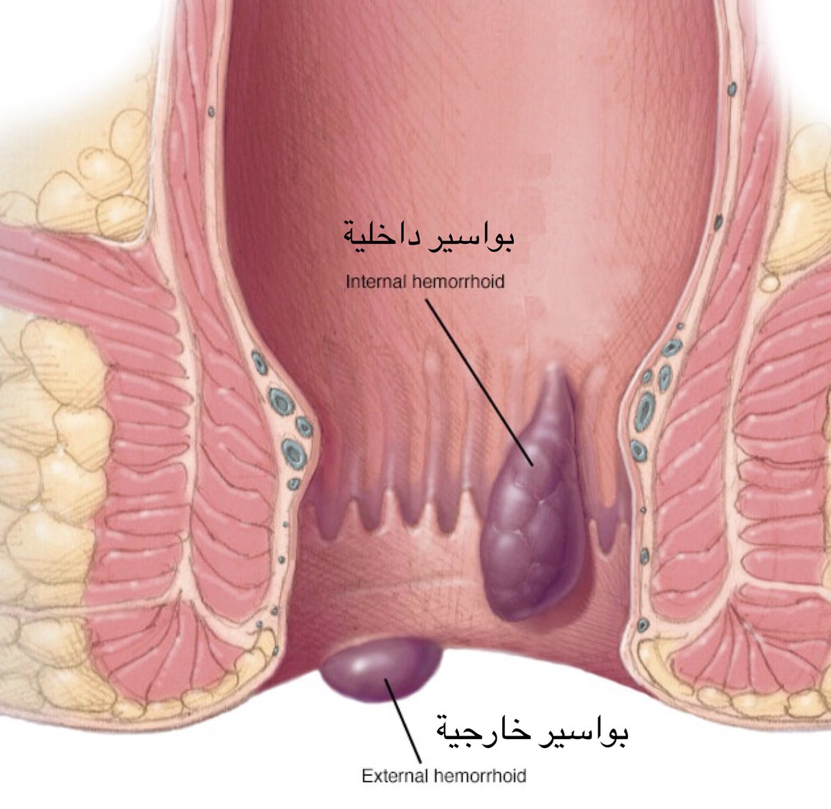 البواسير الخارجية: خارج فتحة الشرج وتعالج بإزالتها بعملية جراحية.