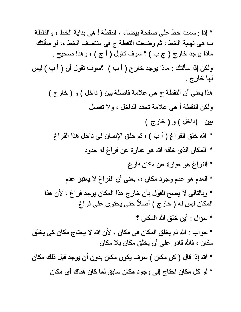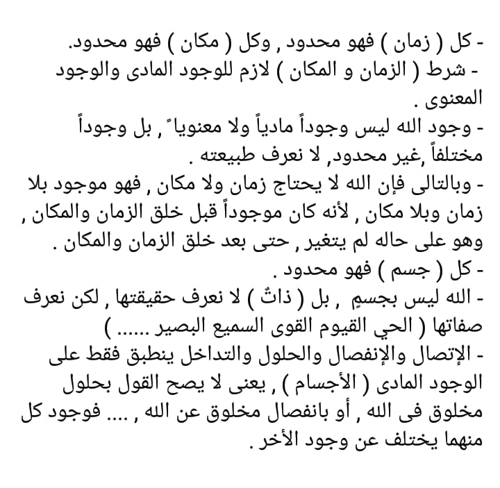 19- قبل وجود المخلوق كان الله موجوداً وليس معه أحد .. وبعد وجود المخلوق فإن الله موجود وليس معه أحد ،، لأن المخلوق موجود بالله وليس مع الله ،، لأن الله لا يشترك مع أحد فى زمان ولا مكان ، لأن الله موجود بلا زمان وبلا مكان .