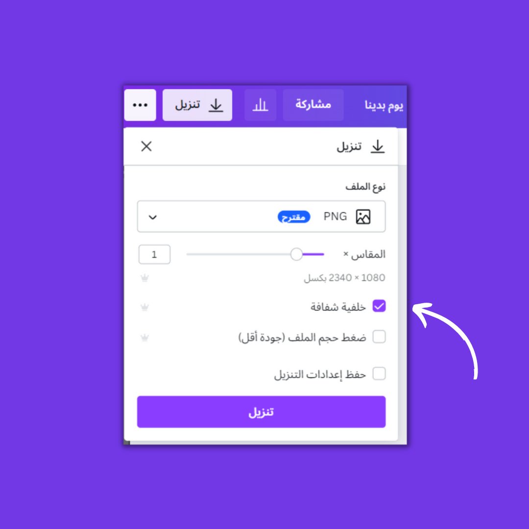 عشان لما تاجي تحفظ التصميم مهم تختار "خلفية شفافة "