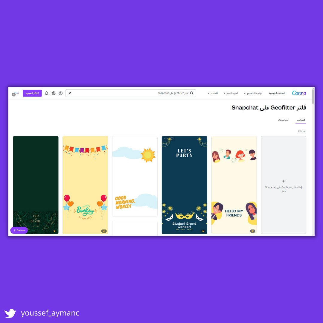 @mkt_chess هنا يا صديقي راح نروح على البحث الرئيسي في كانفا ونكتب "geofilter "