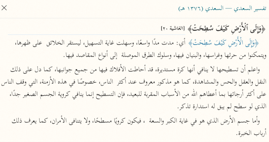 فالذي يؤمن بأن الأرض مسطحة سيتفكر بخلق الله وعظمته ولن يضره هذا شي وكذلك من يؤمن بأن الأرض كروية