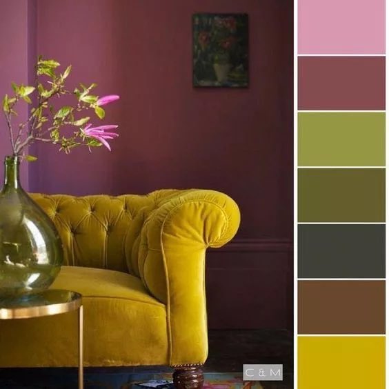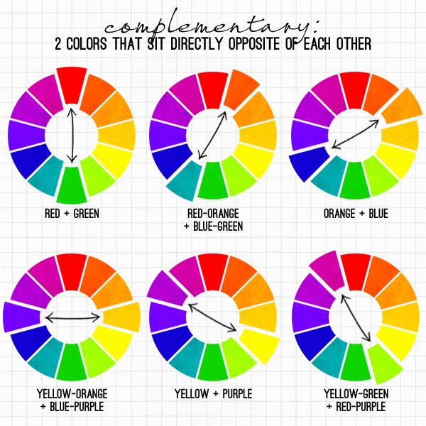 وهي الالوان التي يتمم بعضها بعض و لكن استعمالها يوحي الدقه و الخبره و تعطي هذه الالوان بالاستعمال الصحيح الشعور بالاثاره و السرور و التشويق. ، " مثل النمط البوهيمي "