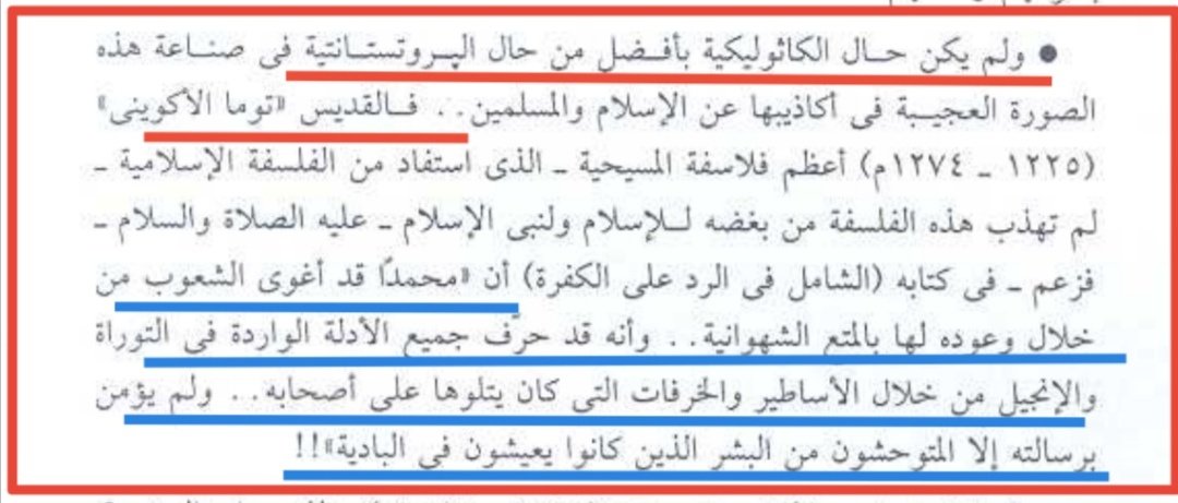أما عداء الكاثوليكية المسيحية للإسلام فجاء على لسان أحد أكبر قساوستها وهو القديس توما الأكويني الذي قال:(أن محمدا قد أغوى الشعوب من خلال وعوده لها بالمتع الشهوانية وأنه حرف جميع الأدلة الواردة في التوراة والإنجيل ولم يتبعه إلا المتوحشون من البادية) #اوكرانيا_روسيا