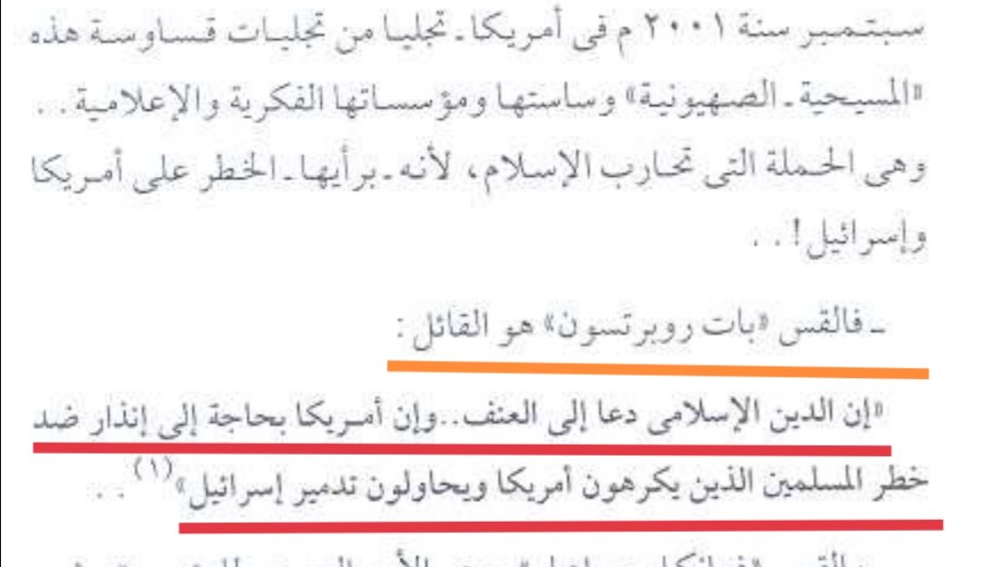 ولنتذكر ماقاله القس روبرتسون:(إن الدين الإسلامي دعا إلى العنف وإن أمريكا بحاجة إلى إنذار ضد خطر المسلمين...)