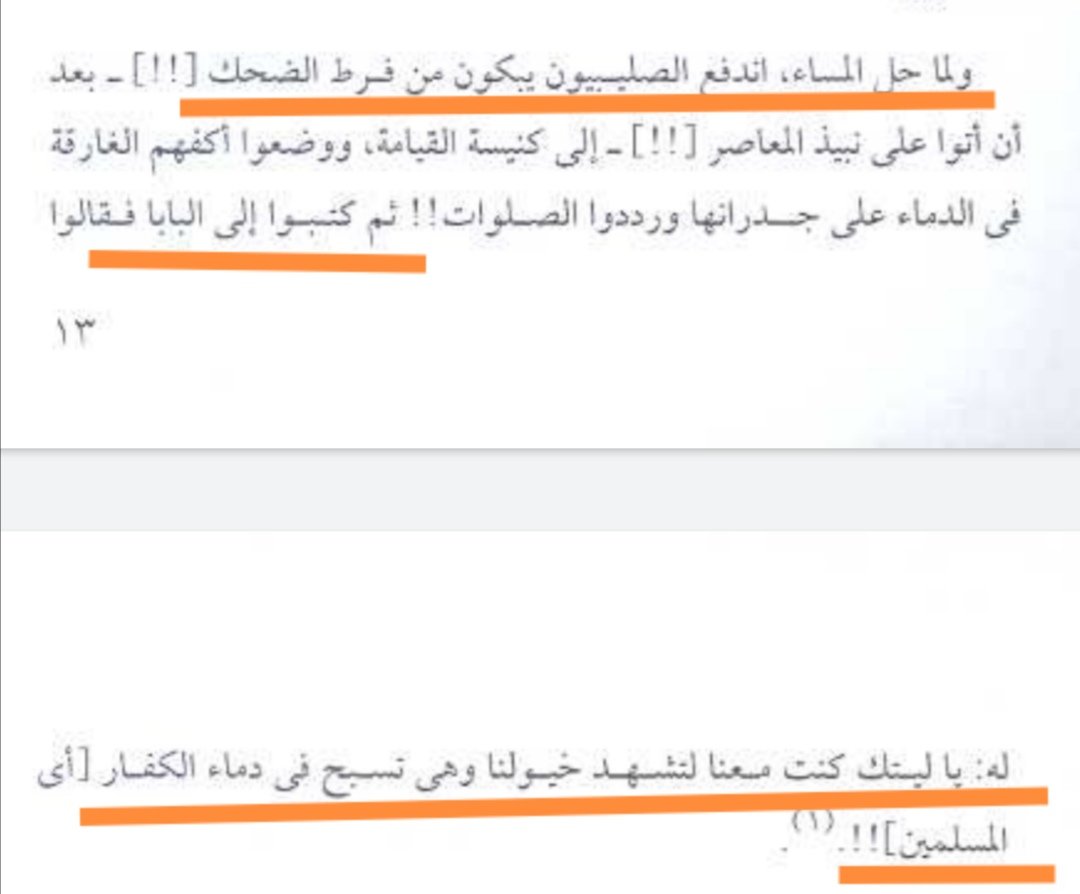 فالصليبيون أبادوا بالسيف كل الموجودين وحلوا الباحات إلى بحار من الدماء..)
