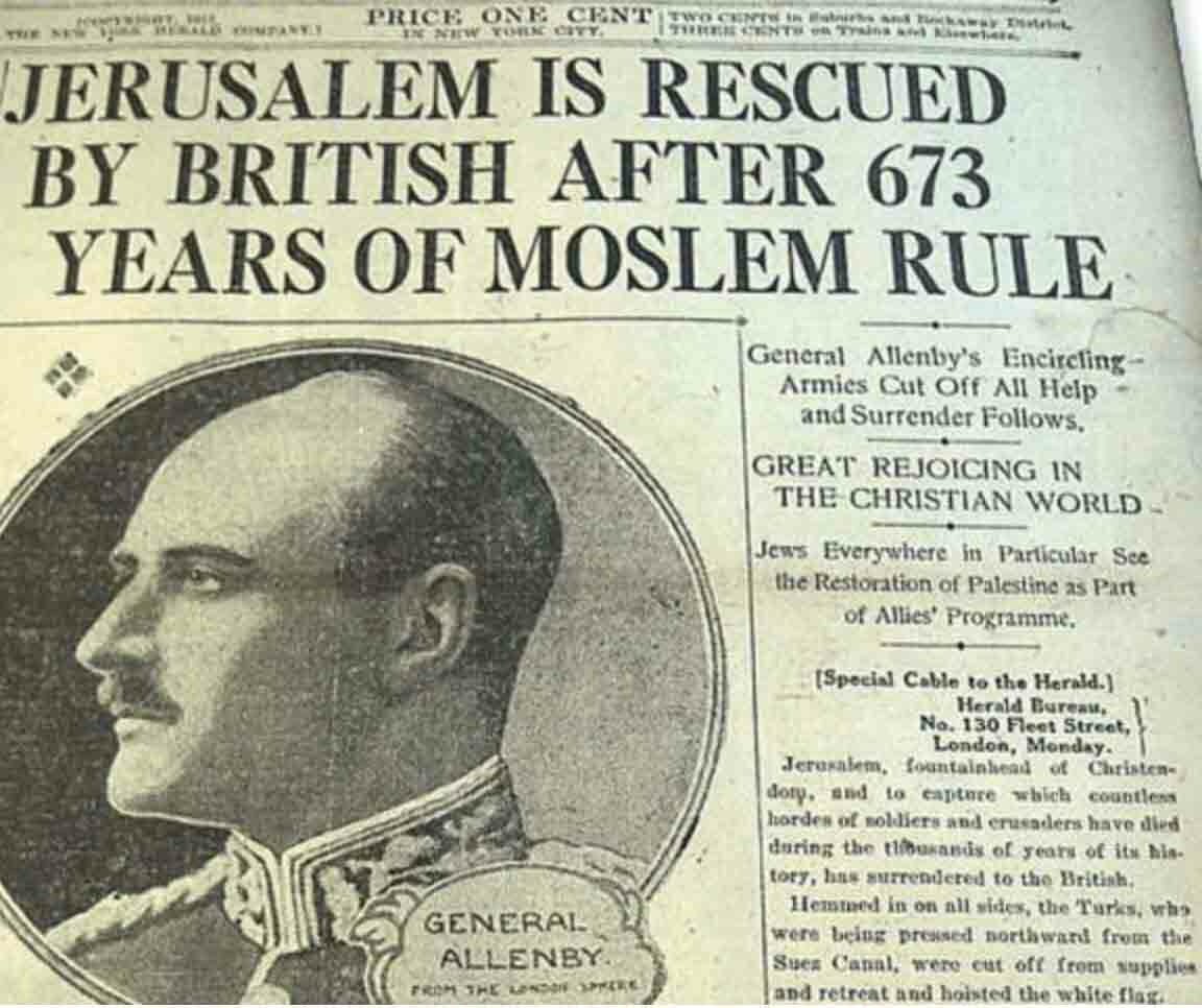 وأعلنها الجنرال الإنجليزي أدموند اللنبي بكل وضوح بعد دخوله القدس 1917م قائلا: