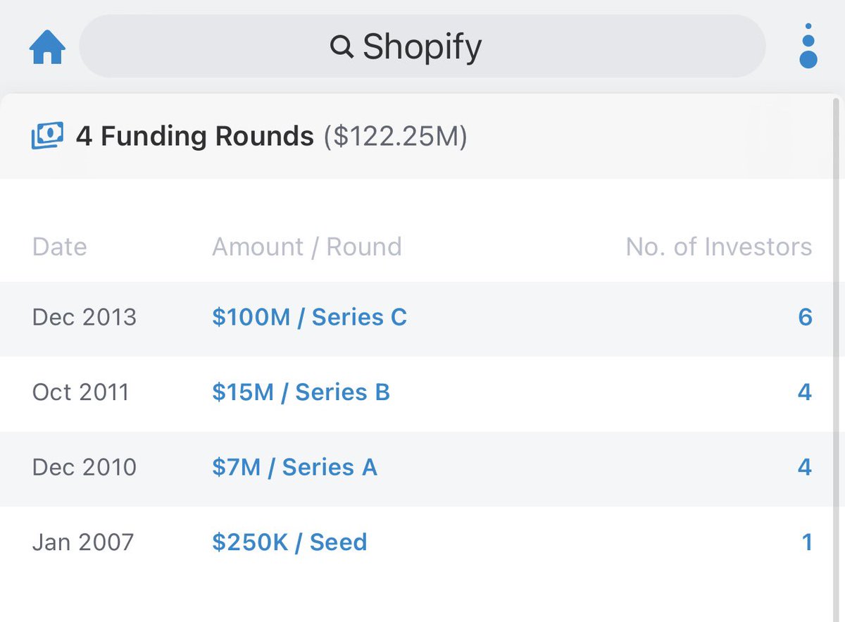في يناير ٢٠٠٧ حصلت شوبيفاي اول جولة تمويلية بمبلغ ٢٥٠ الف دولار.