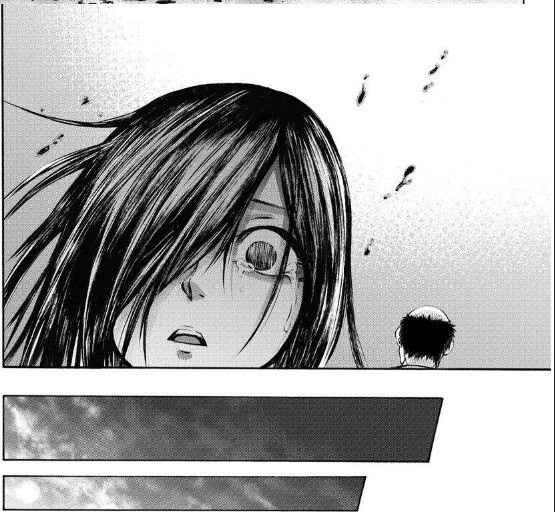نلاحض أن ميكاسا لم تنصدم من خبر موت إيرين عكس ما توقعه الجميع كأنها كانت معتادة على الأمر , ثم ننتقل لذكريات لقائها الأول مع إيرين