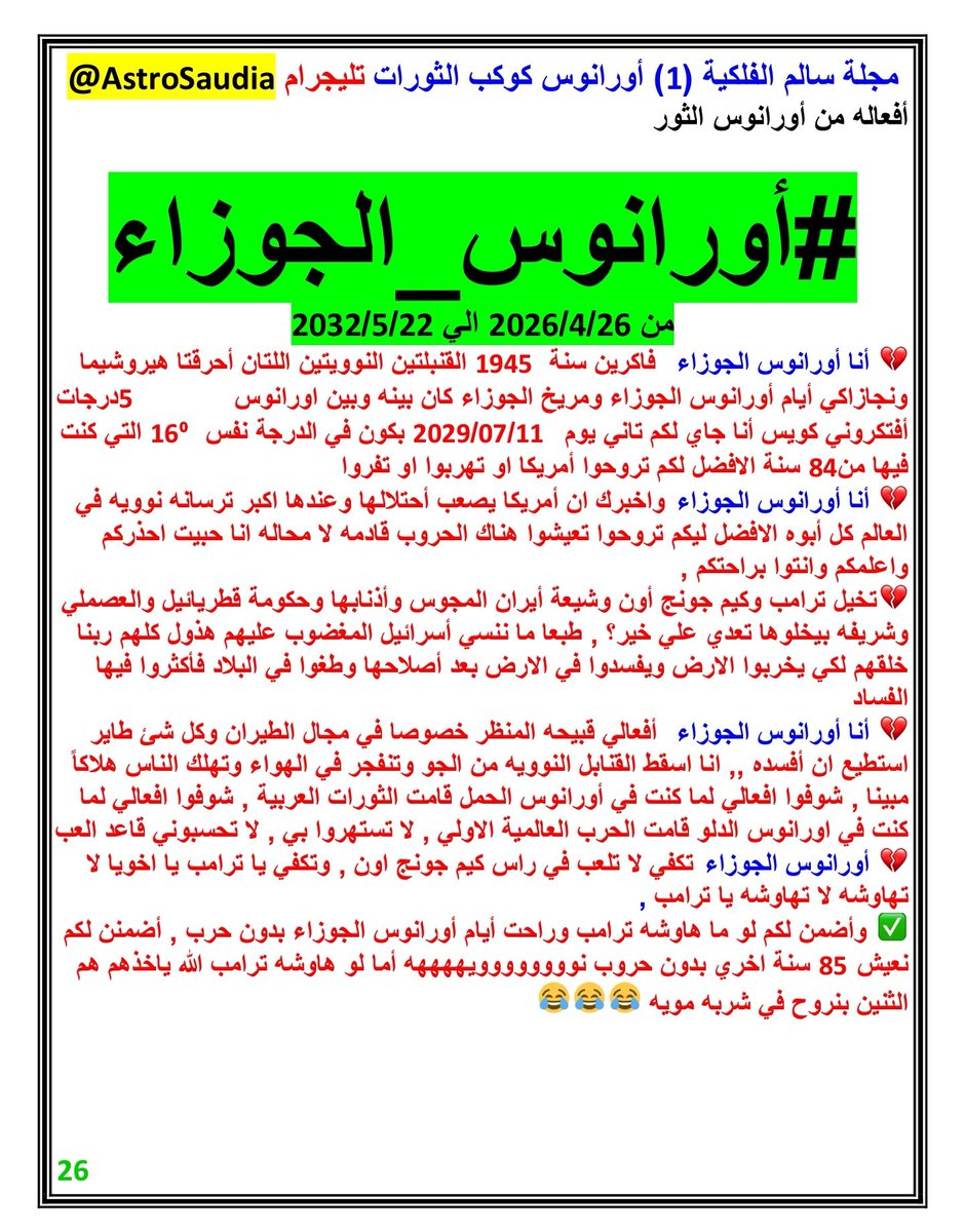 أنه نحن على أعتاب دخول #أورانوس_الجوزاء 2026 وهو اللي كان موجود في 1945 أيام هيروشيما ونجازاكي☢️ ، حالياً إحنا فى 2022 وحصل أبتلاع كامل لدولة قدام عينيك