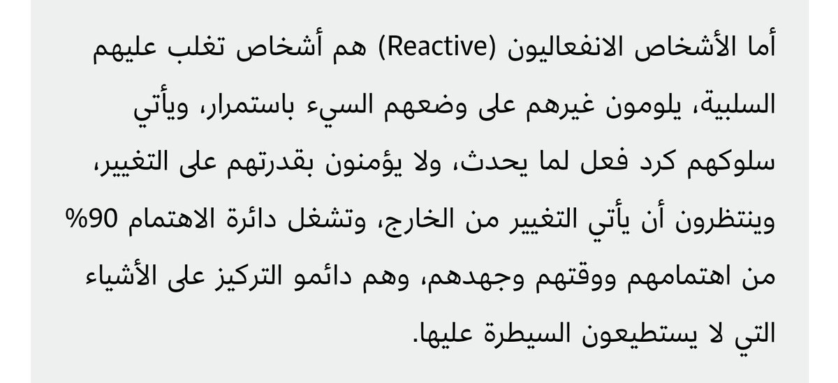 (ستيفن كوفي) في كتابه الرائع (العادات السبع للاشخاص الاكثر فعالية) تكلم عن