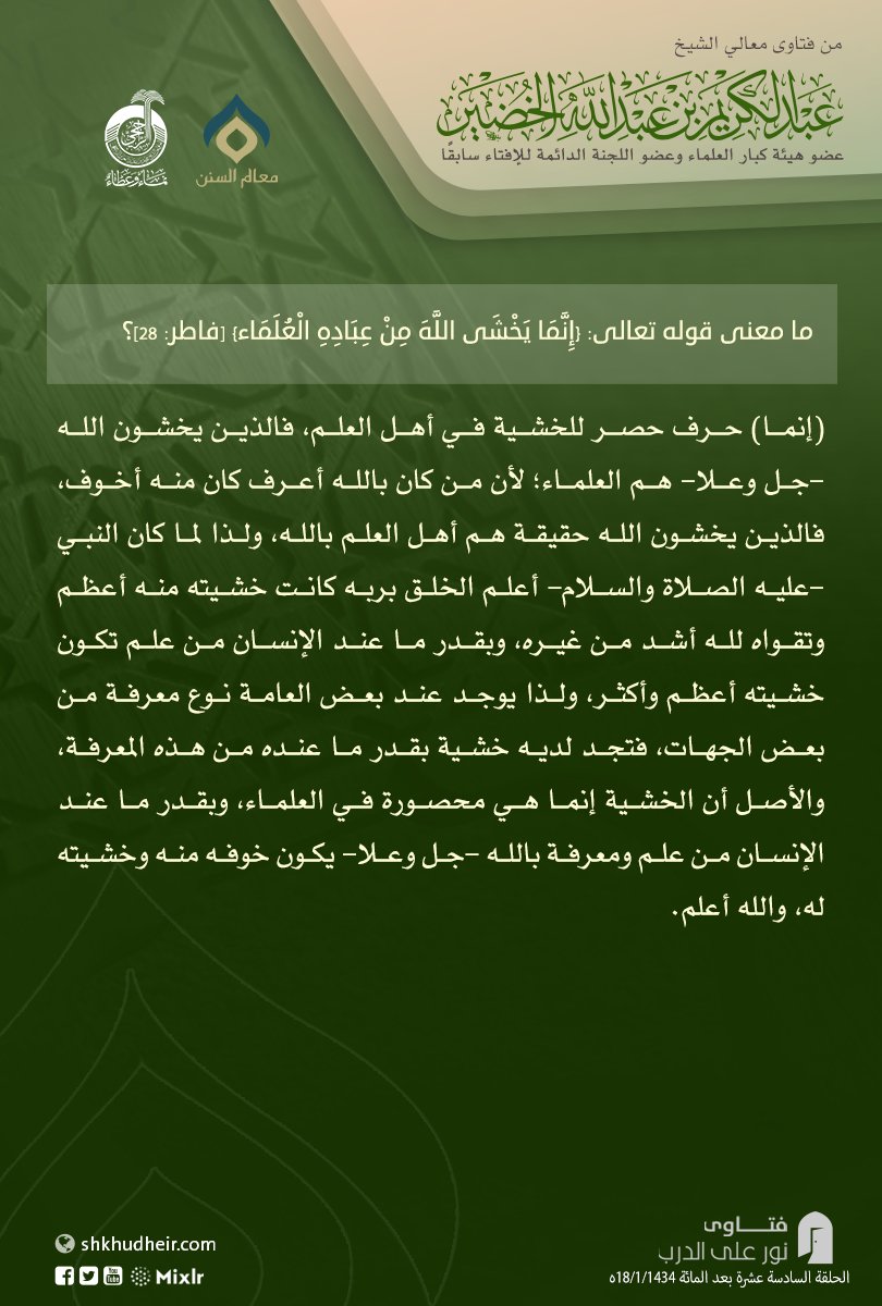 ما معنى قوله تعالى: {إِنَّمَا يَخْشَى اللَّهَ مِنْ عِبَادِهِ الْعُلَمَاء} [فاطر: ٢٨]؟