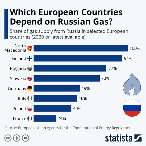 الدول التي تعارض إزالة روسيا (خاصة ألمانيا وإيطاليا) من نظام #سويفت هي نفسها من تعتمد عليها بالغاز.