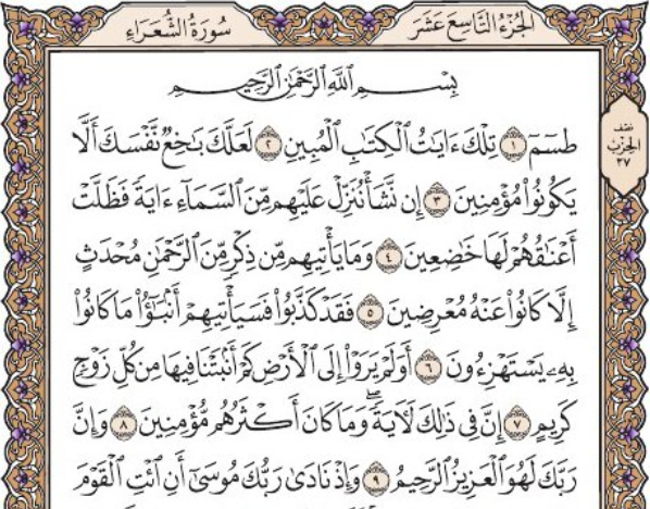 2/بدأت السورة الكريمة #سورة_الشُعراء بقوله تعالى (( تِلك آيات الكتاب المُبين)) أي بدأت السورة المُبارَكة بذِكر القرآن الكريم ....وختمت السورة المُباركة بقوله تعالى (( وإنه لتنزيل ربّ العالَمين)) أي ختمت بذِكر القرآن الكريم أيضاً 👇