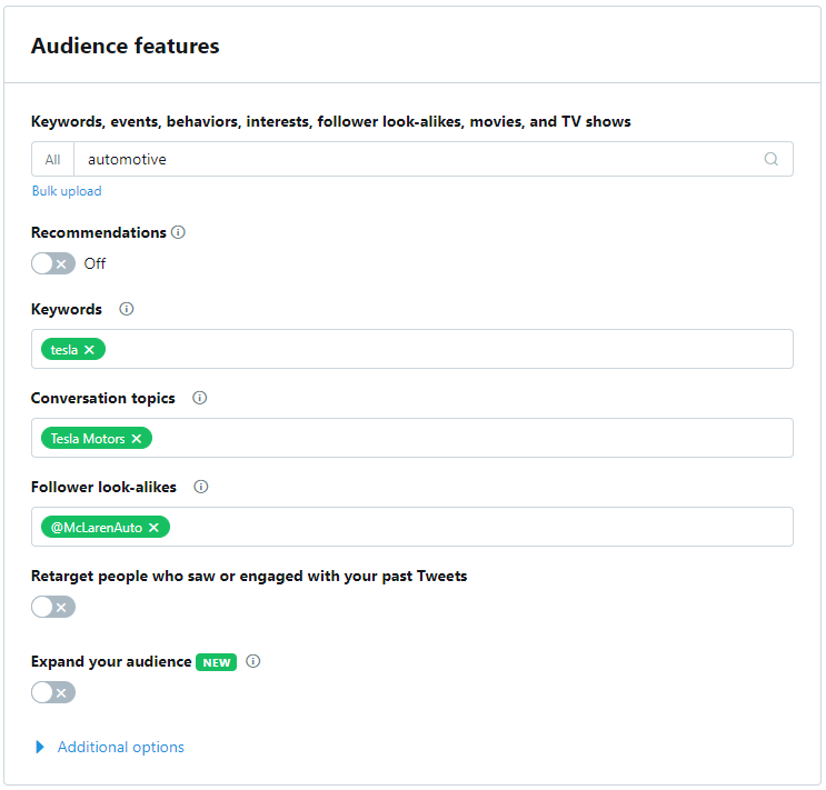 توصي تويتر باستخدام ما لا يقل عن ٢٥ كلمة مفتاحية في الحملة الواحدة، لضمان وصول الحملة للجمهور المُستهدف بدقة.