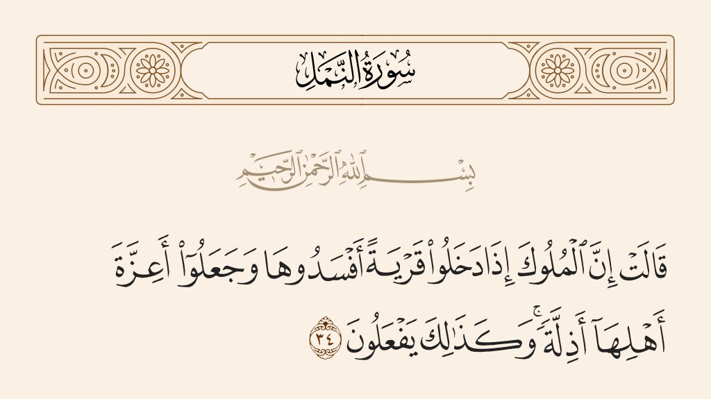 15/👈خامساً: ينبغي للعبد أن يَقبل الحَق من أي أحد حتى لو كان مُخالفاً له في الدِّين فإن الله سبحانه وتعالّى صدّق على قول #بلقيس عندما كانت كافرة عندما قالت(( قالت إن الملوك إذا دخلوا قرية أفسَدوها وجعلوا أعزة أهلها أذلة)) فقال سبحانه وتعالى في نفس الآية((وكذلك يفعلون)) 👇