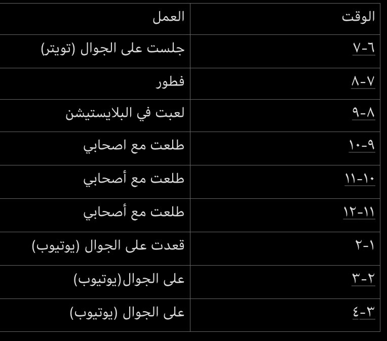 بعدها شوف البيانات اللي جمعتها في الأسبوع كله وحدد الأشياء اللي تضيع وقتك👽:
