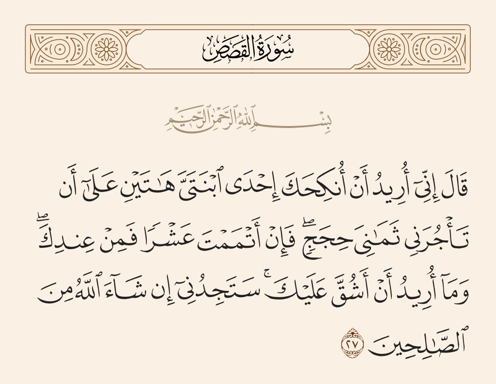 👈من الموافقات العجيبة في السورة المُباركة تشابُه قصة موسى عليه السلام وقصة مُحمّد صلّى الله عليه وسلّم لِحد كبير حيث خرج موسى من مصر إلى مدين ثم رجع إلى مصر بعد (8) سنوات وكذلك مُحمّد رجع إلى مكّة فاتحاً بعد خروجه منها ب(8) سنوات أيضاً👇