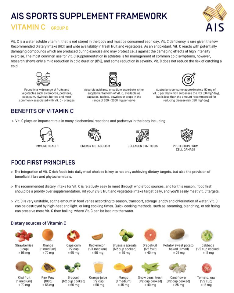 وهي تصنف من ضمن المكملات التي ترفع من أداء اللاعب بشكل غير مباشر عن طريق زيادة صحة اللاعب وتجنب الإصابة أو حتى التعافي منها وأيضاً تحمل الألم وغالباً ما يكون اللاعبين المحترفين معرضين للإصابة بنزلات البرد أثناء السفر أو تغير الأجواء خلال الموسم