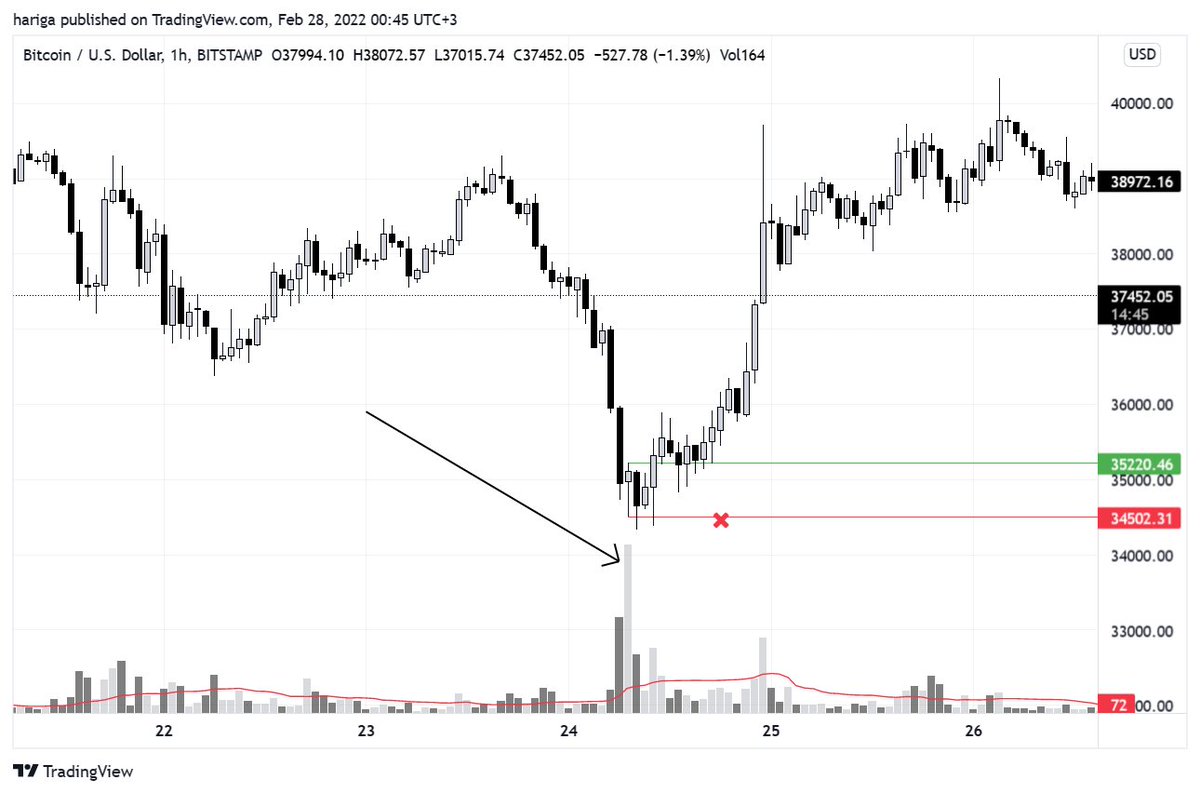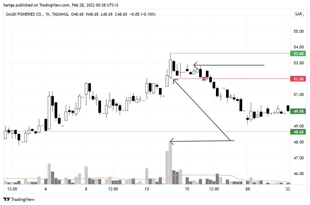 الوقف قاع شمعة الكميات لكن تقدر تحطه قمهتا احتياطاً وتمشي مع السهم أو العملة
